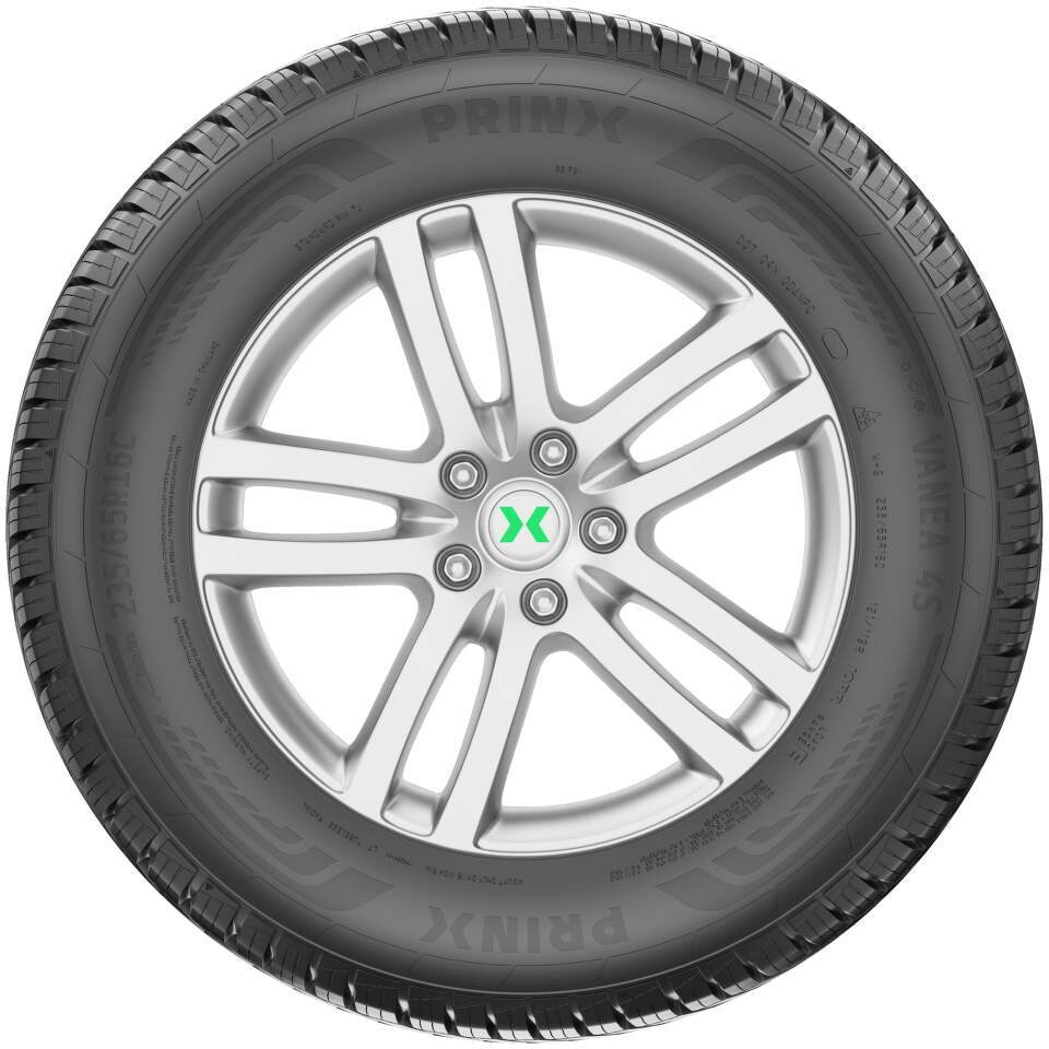 PRINX VANEA 4S je celoroční pneumatika pro dodávky a lehká užitková vozidla, navržená pro efektivní provoz bez nutnosti sezónní výměny. Nabízí vysoký kilometrový nájezd, nízkou spotřebu, tichou jízdu a skvělou přilnavost na mokru i sněhu. Díky V-drážkám, odolné směsi a lamelám po celé hloubce dezénu zajišťuje bezpečnost i při opotřebení. Nepravidelné rozložení bloků navíc snižuje vibrace a zvyšuje komfort na dlouhých trasách.